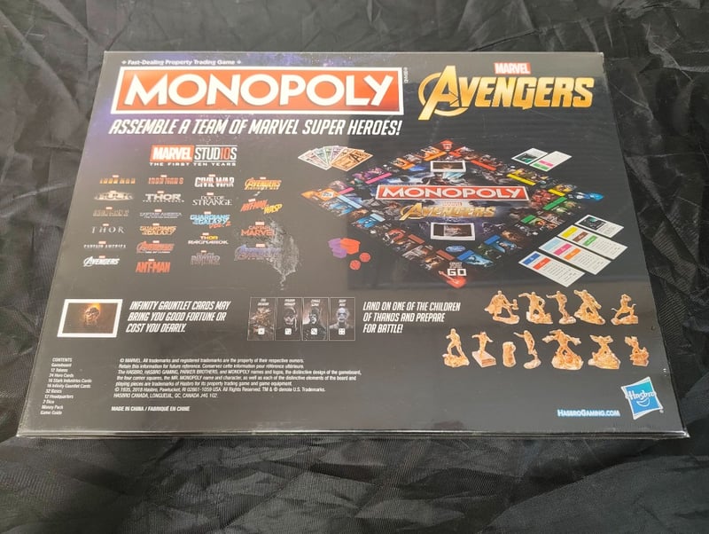 Fast-Dealing Property Trading Game Featuring Marvel Avengers Characters. Board Game Includes Gameboard, Play Money, Property Cards, Infinity Gauntlet Cards, Wooden Tokens, Dice, And Character Figurines. Designed For 2-4 Players, Ages 8+. Assemble A Team Of Marvel Super Heroes While Acquiring Properties And Engaging In Strategic Trading Gameplay.
