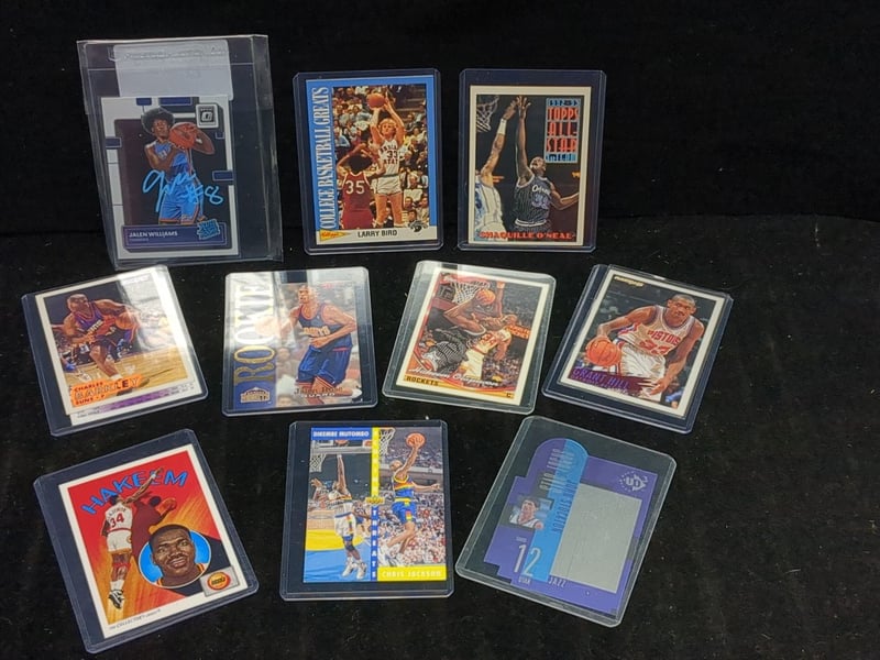 Comprehensive Collection Of Unslabbed Nba Trading Cards Spanning The 1980S-1990S Era, Featuring Notable Players Including Jalen Williams (Signed), Larry Bird, Shaquille O'Neal, Grant Hill, Charles Barkley, Hakeem Olajuwon, Dikembe Mutombo, And Chris Jackson. Cards Represent Multiple Manufacturers Including Topps, Fleer, And Upper-Tier Releases. The Lot Includes Professionally Graded Specimens In Protective Cases Alongside Vintage Cardboard Examples. Notable Condition Variation Across The Collect