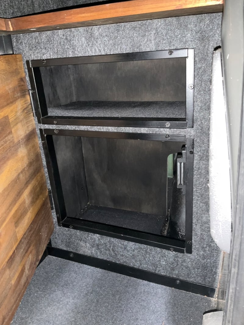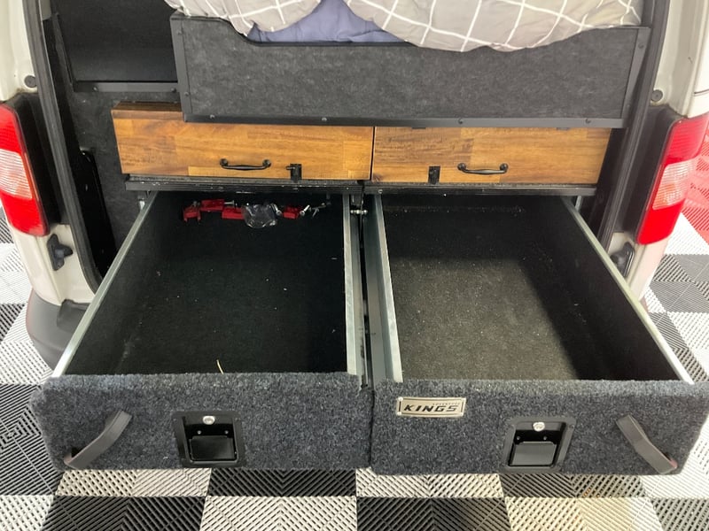* Kings dual-drawer system (carpet-lined, metal slides, locking latches)