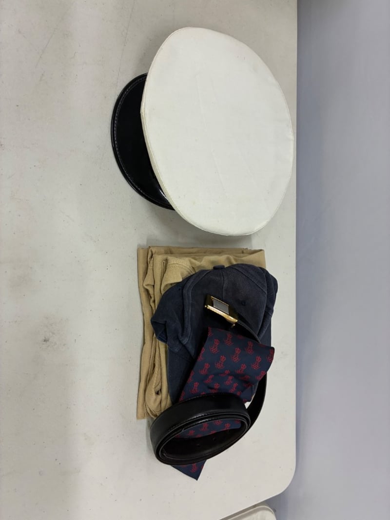 ROYAL NAVY OFFICER'S DRESS UNIFORM SET WITH ACCESSORIESUniform Set is Danish Royal Security Guard Officer From Fredensborg PalaceSOLD AS LOTItem Size: Height: 35cm, Width: 26cm, Depth: 22cm, Weight: 3KgCondition: Good - Refer To Images582939+6