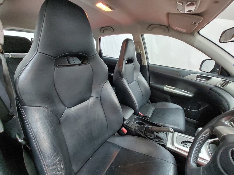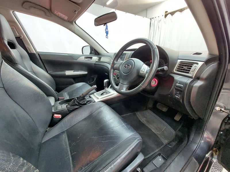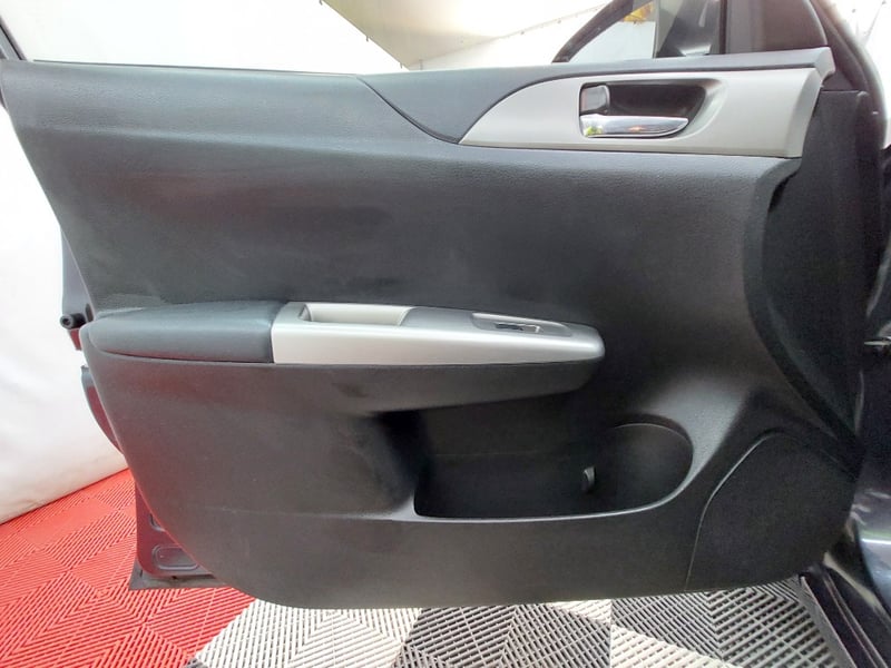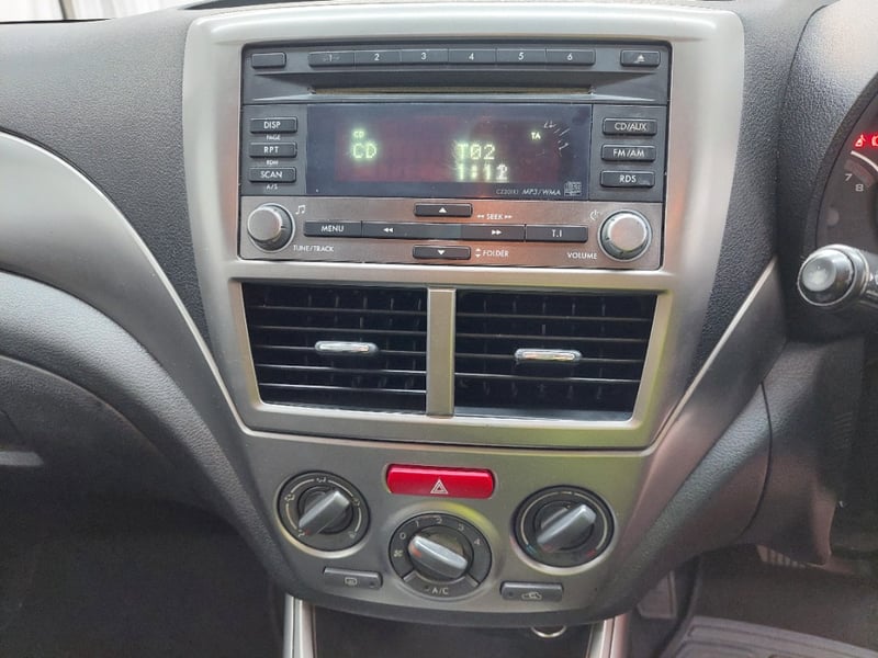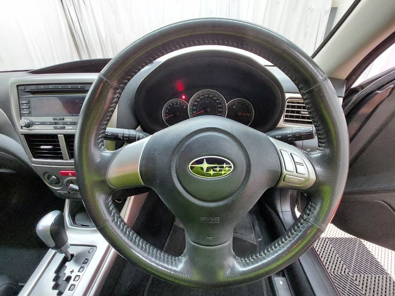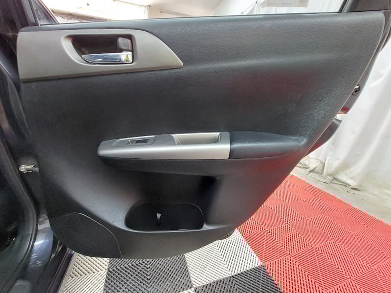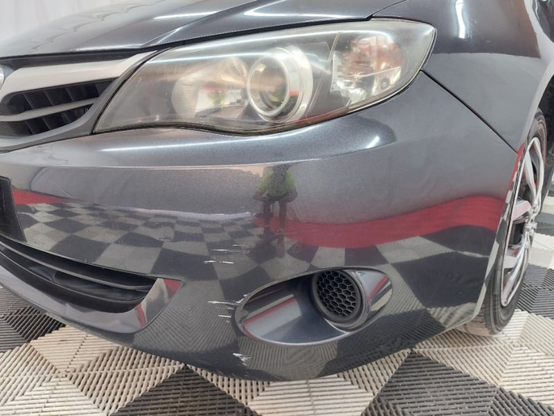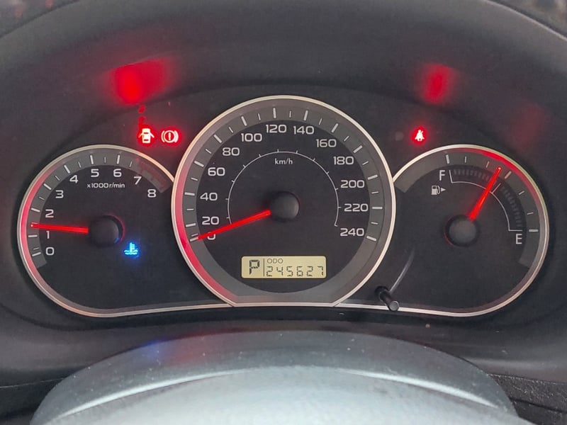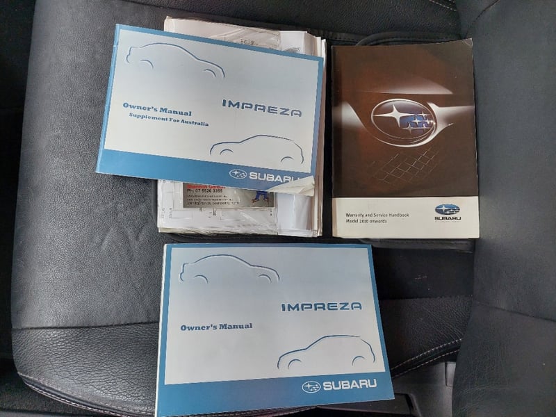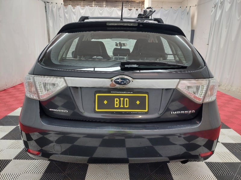 2010 Subaru Impreza G3 four-door hatchback finished in grey with distinctive red accent stripe. This all-wheel-drive compact hatchback features a 2.0-litre naturally aspirated four-cylinder petrol engine paired with a four-speed automatic transmission. The vehicle displays 245,627 kilometres on the odometer and comes equipped with roof-mounted Thule bicycle carriers. The interior presents black leather upholstery with grey trim accents, manual climate control, and a CD/MP3 compatible audio system. Documentation includes owner's manuals and service logbook with maintenance records. The vehicle is presented with original Subaru key fob. Rust corrosion on lower door trim panels, surface rust on door edge seals, minor paint scratches on driver side door handle area, wear marks on leather seat bolsters, scuff marks on interior door panels, minor surface corrosion visible on undercarriage components, light oxidation on exterior trim, worn seat leather with visible creasing, minor dents on rear bumper, scratches on rear reflector lens.. Inspection recommended.