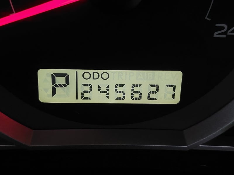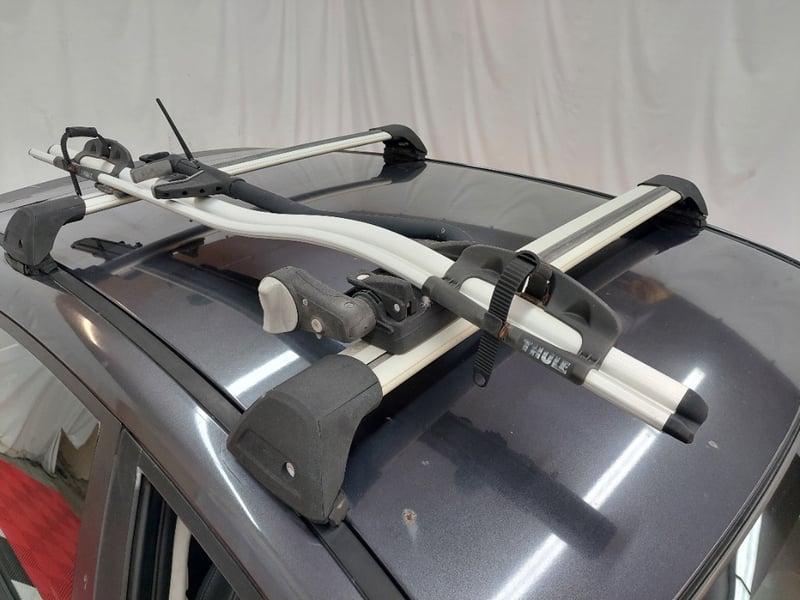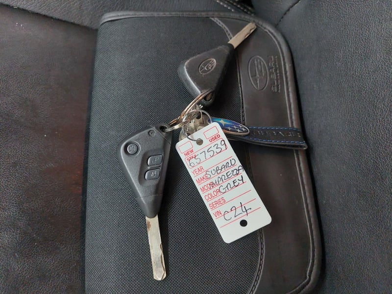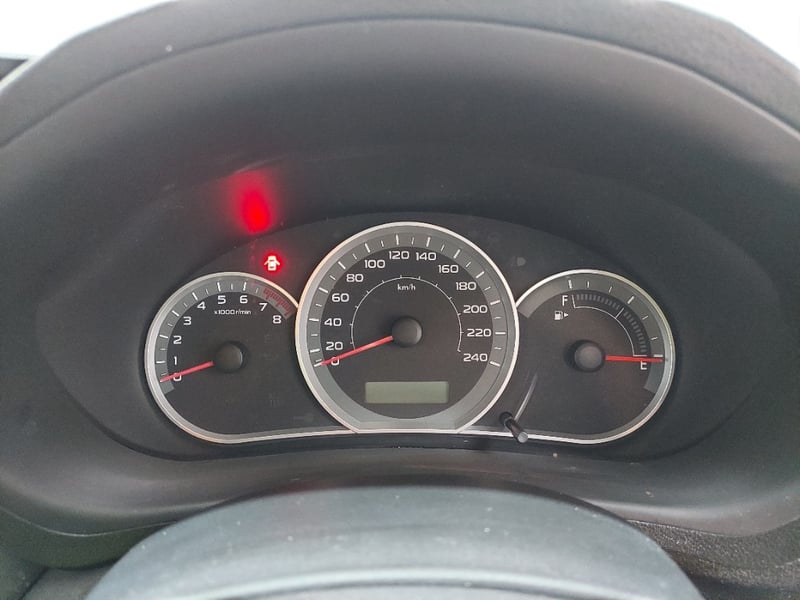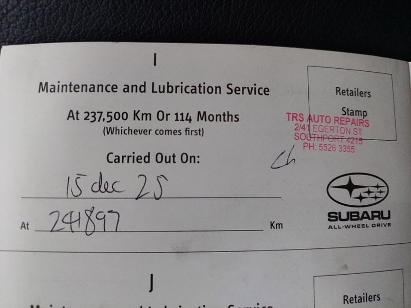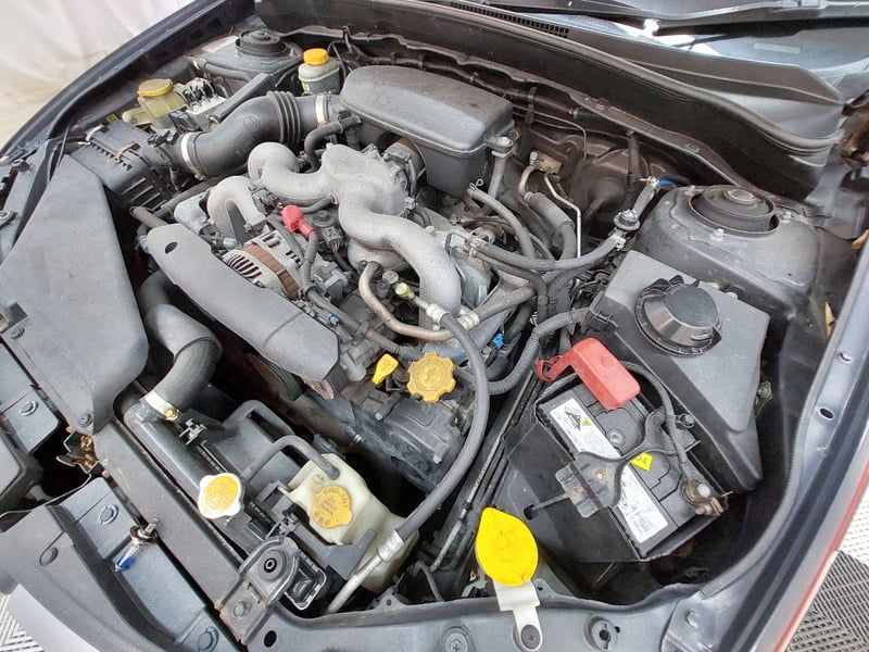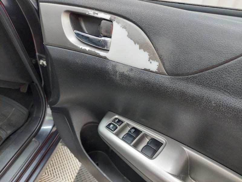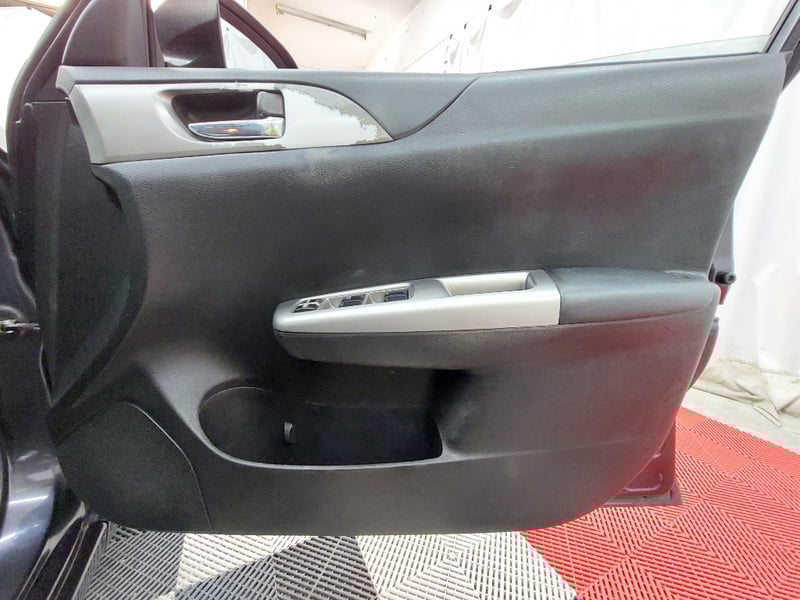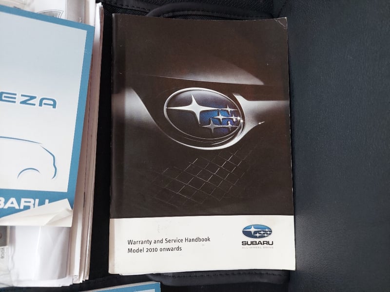 2010 Subaru Impreza G3 four-door hatchback finished in grey with distinctive red accent stripe. This all-wheel-drive compact hatchback features a 2.0-litre naturally aspirated four-cylinder petrol engine paired with a four-speed automatic transmission. The vehicle displays 245,627 kilometres on the odometer and comes equipped with roof-mounted Thule bicycle carriers. The interior presents black leather upholstery with grey trim accents, manual climate control, and a CD/MP3 compatible audio system. Documentation includes owner's manuals and service logbook with maintenance records. The vehicle is presented with original Subaru key fob. Rust corrosion on lower door trim panels, surface rust on door edge seals, minor paint scratches on driver side door handle area, wear marks on leather seat bolsters, scuff marks on interior door panels, minor surface corrosion visible on undercarriage components, light oxidation on exterior trim, worn seat leather with visible creasing, minor dents on rear bumper, scratches on rear reflector lens.. Inspection recommended.