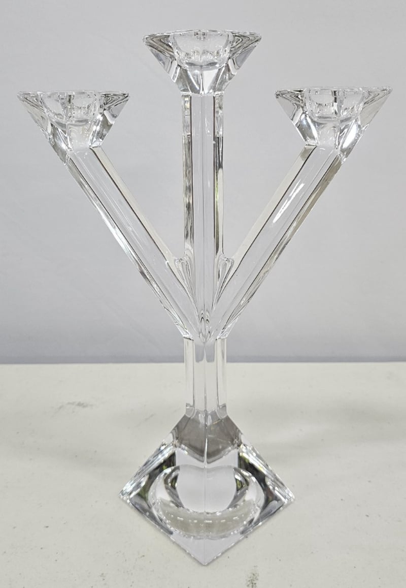 VILLEROY AND BORSH VINTAGE CRYSTAL THREE-BRANCH CANDELABRA Item Size: Height: 23cm, Width: 32cm, Depth: 12cm, Weight: 1.5Kg Condition: Good - Refer To Images 582942+5