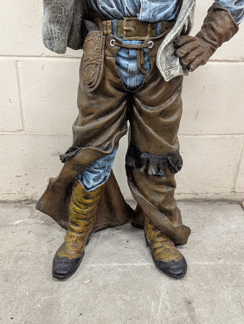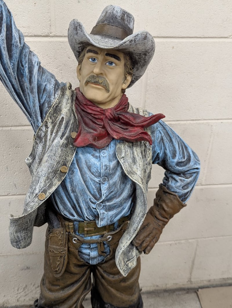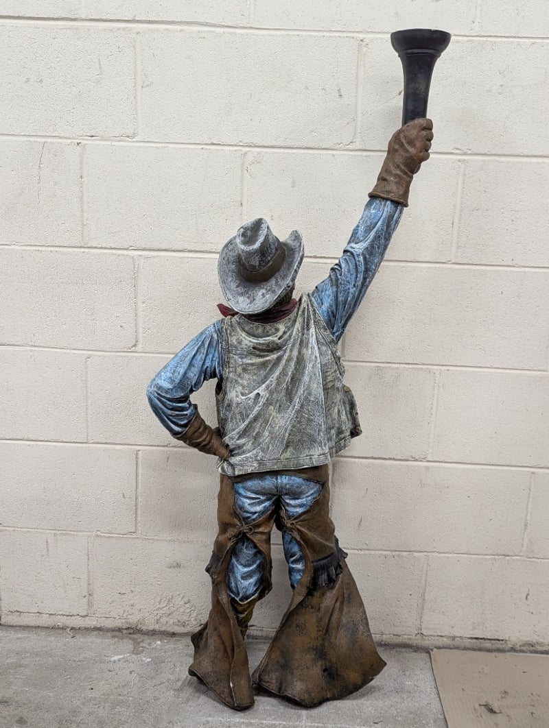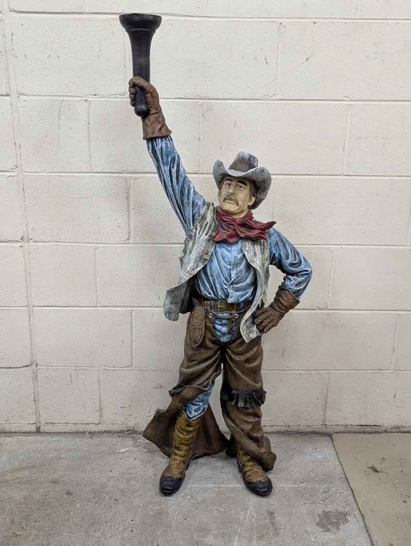 COWBOY STATUE WITH RAISED ARM AND TORCH