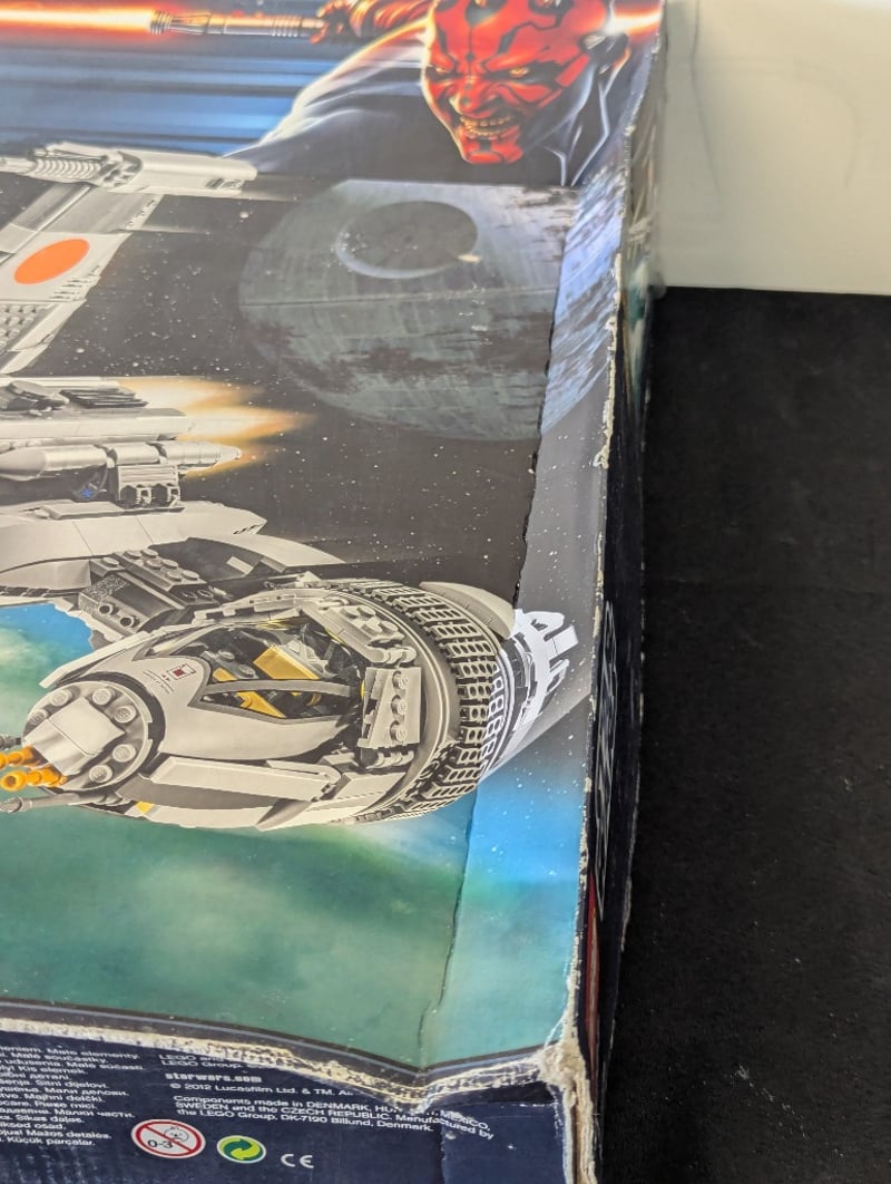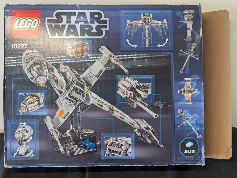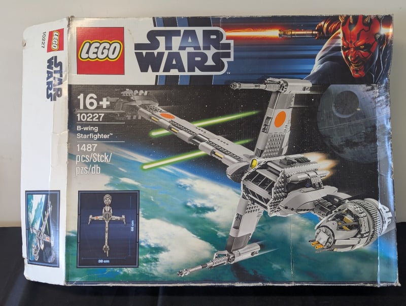 Lego Star Wars Set 10227 B-Wing Starfighter, 1487 Pieces, Age 16+. Original Box With Vintage Branding And Darth Maul Artwork. Appears Mostly Complete With Components Visible In Opened Box. Includes Instructional Materials And Minifigures. Box Exhibits Wear Consistent With Display Storage, With Creasing And Minor Surface Damage To Corners And Edges. Authentic Early-To-Mid 2010S Release.