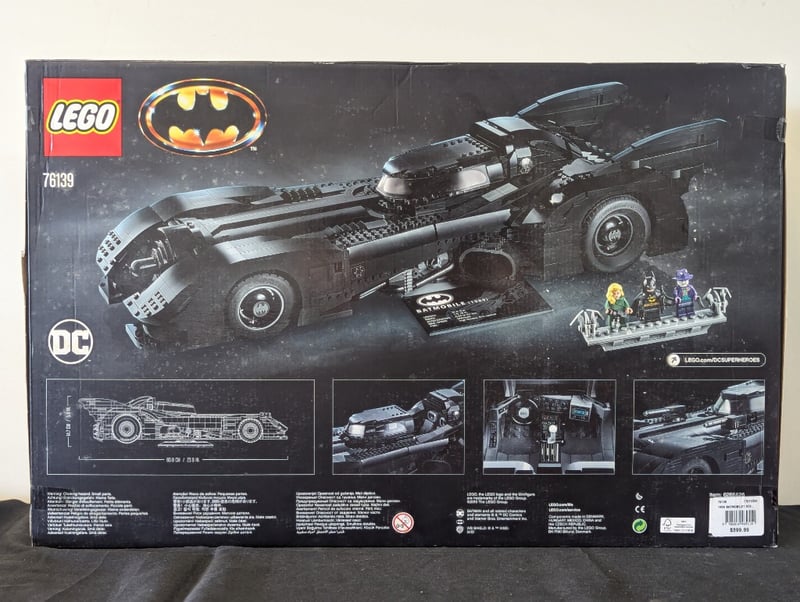 Lego Dc Comics Batman 1989 Batmobile (Set 76139) Featuring The Iconic Vehicle From Tim Burton'S Classic Film. This Premium Collectible Set Includes Detailed Minifigures Of Batman, Joker, And Additional Characters. The Batmobile Showcases Intricate Black Brick Construction With Opening Canopy, Detailed Cockpit With Steering Controls, And Articulated Design Elements. Includes Display Stand And Comprehensive Instruction Manual. Set Number 76139, Rated For Ages 16+, With 1,999 Pieces.