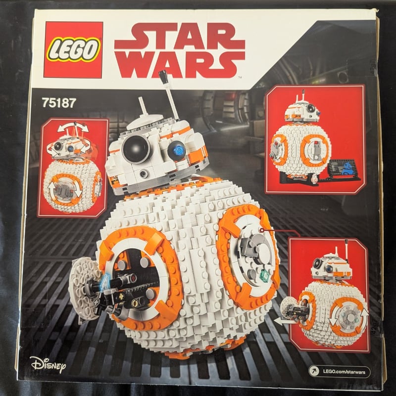 LEGO STAR WARS BB-8 DROID FIGURE SET 75187Lego Star Wars Bb-8 Buildable Droid Figure (Set 75187) Featuring The Iconic Spherical Astromech From The Sequel Trilogy. The Set Includes 1,106 Lego Pieces And Measures Approximately 26Cm In Height When Fully Assembled. Constructed With White And Orange Lego Bricks Forming Bb-8'S Distinctive Rolling Sphere Body With Rotating Panels, Antenna Details, And Articulated Wheels. Includes Minifigure-Scale Accessories And Display Base Platform. Designed For Ages 10-16. Original Retail Packaging With ComCondition: Good - Refer To Images584526+186