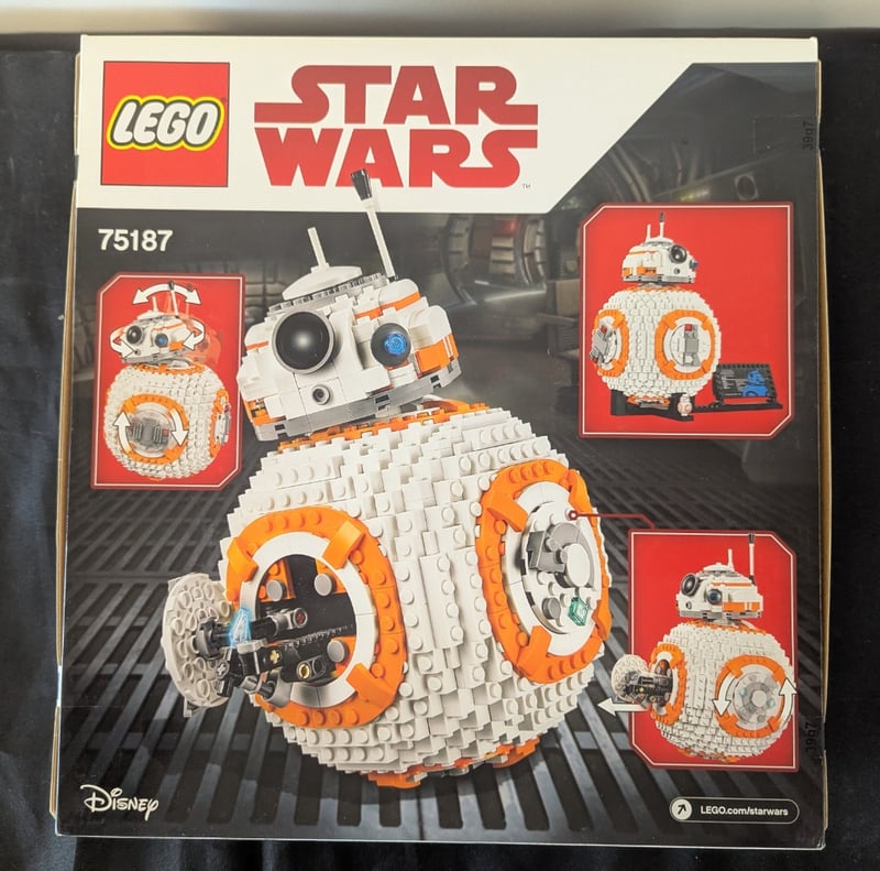 Lego Star Wars Bb-8 Buildable Droid Figure (Set 75187) Featuring Detailed White And Orange Construction With Motorised Rolling Capability. Includes Articulated Head With Rotating Antenna, Poseable Body Segments, And Opening Front Panel. Accompanied By Original Retail Packaging Displaying Complete Set Imagery And Disney Branding.