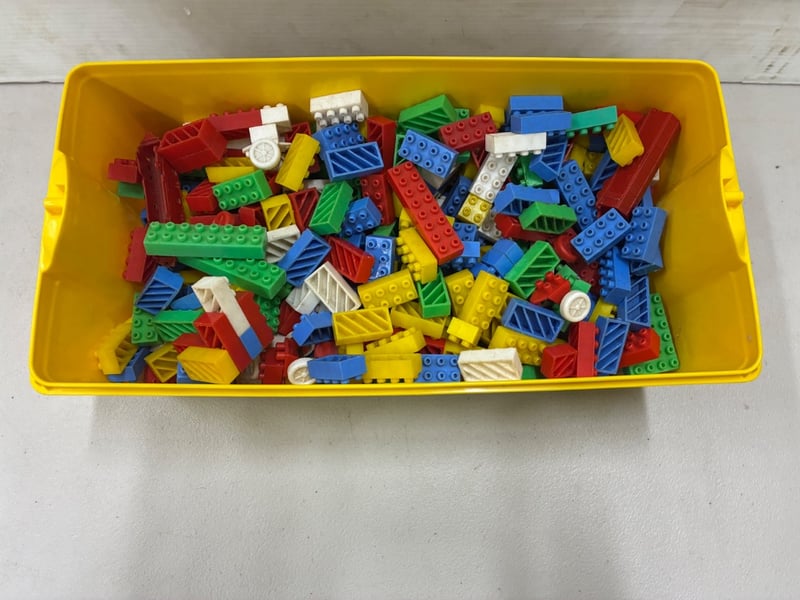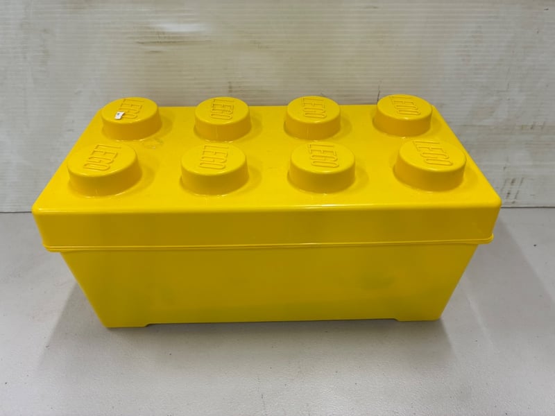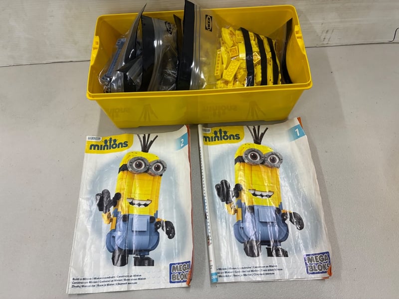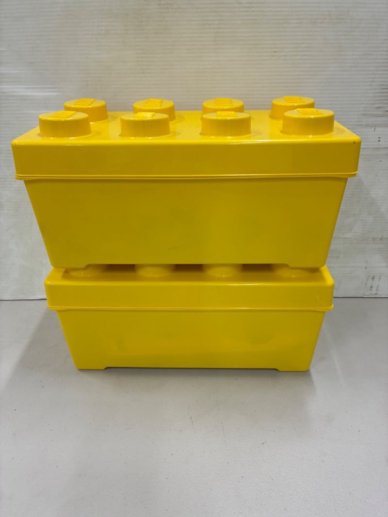 LEGO STORAGE SET, X2 YELLOW BRICK CONTAINERS, INCLUDING A MINIONS LEGO SET AND LOOSE BRICKS