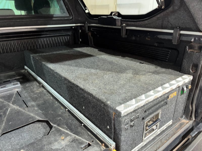 * Cargo drawer system with chequer-plate trim in tub (confirmed from photos)