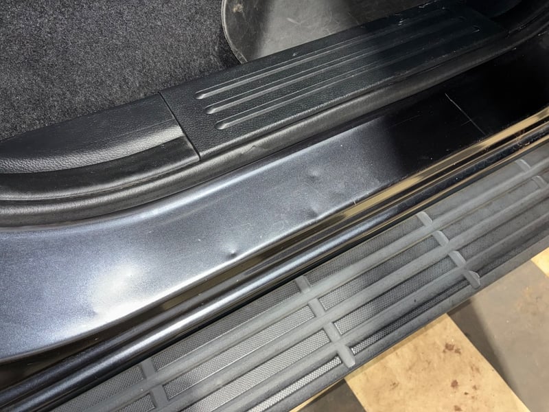 * Rear driver's-side bedside panel dent, between fuel filler cap and rear wheel arch. Panel is deformed, paint appears intact. Clearly visible in photos. Buyers should inspect prior to bidding.