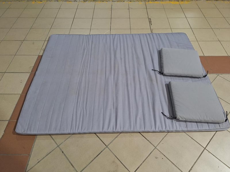 Bed Padding/Floor Mat With Pillows, Grey Finish