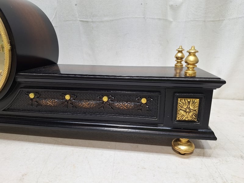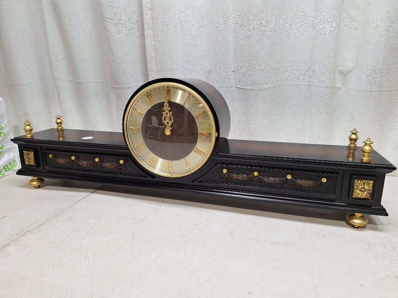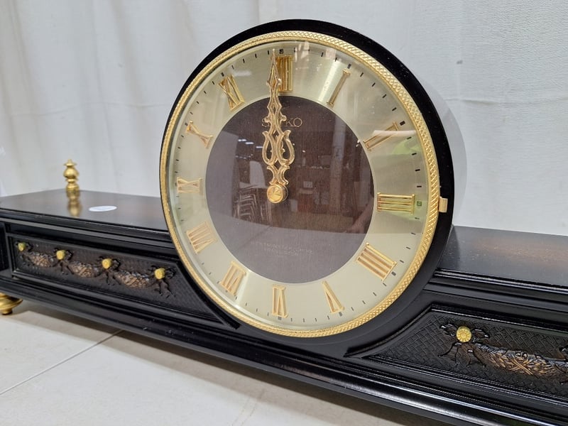 SEIKO Vintage Westminster Chime clock with decorative Gold tone accents, Gold tone dial with roman numerals, measures L: 80 x H:27 x W: 13cm