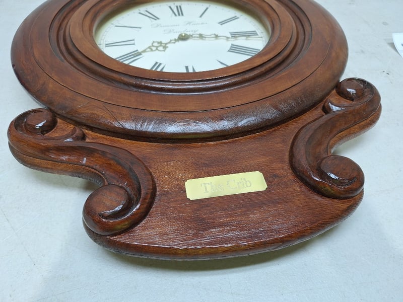 DUNCAN HUNTER Danbury walll clock, The Crib, Pin time, circa 1994, stamped with 006432