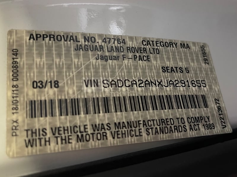 2018 Jaguar F-Pace 20d 5DR Year: 2018Make: JaguarModel: F-PaceSeries: 20d 5DRBody: 4-Door WagonDrive Type: All wheel driveOdometer: Indicating 116,171 KilometersEngine: 2.0 Turbo DieselTransmission: Semi-AutomaticColour: WhiteSeats: 5Description/extras: Air Conditioning, Power windows, SRS, Alloy wheels, AUX / USB, Sunroof, Reverse camera, Central locking, CD player. Fully serviced & meticulously maintained, with a complete service history & no outstanding mechanical issues. VIN: SADCA2ANXJA291655ENG No: 171124W0352204DTD(Key #42B Marple)Lloyds stock #580002+1