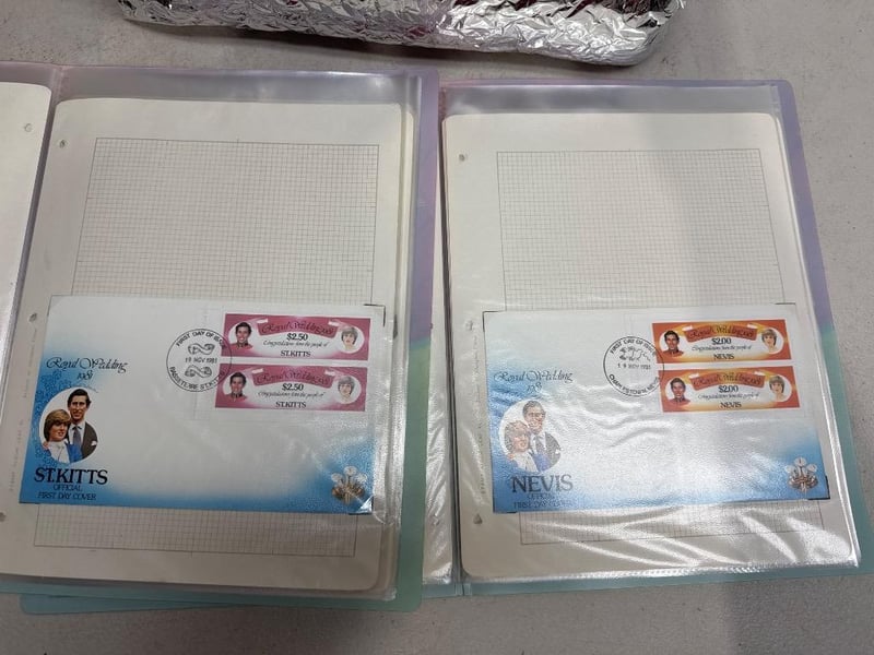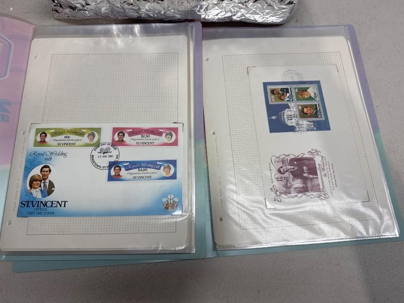 1x vintage photographic album, circa victorian or edwardian era, contains cabinet cards or portrait cards, 2x books of first day covers, royal wedding collections 1981