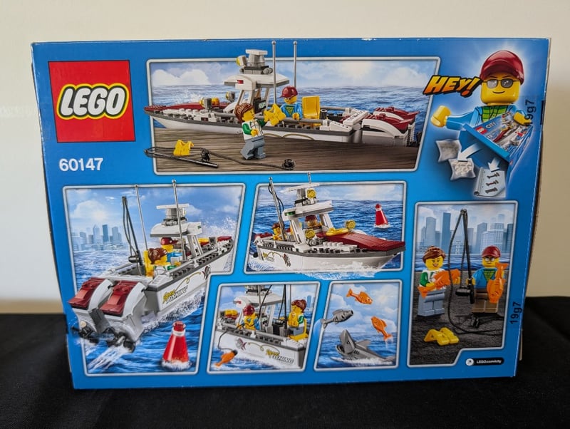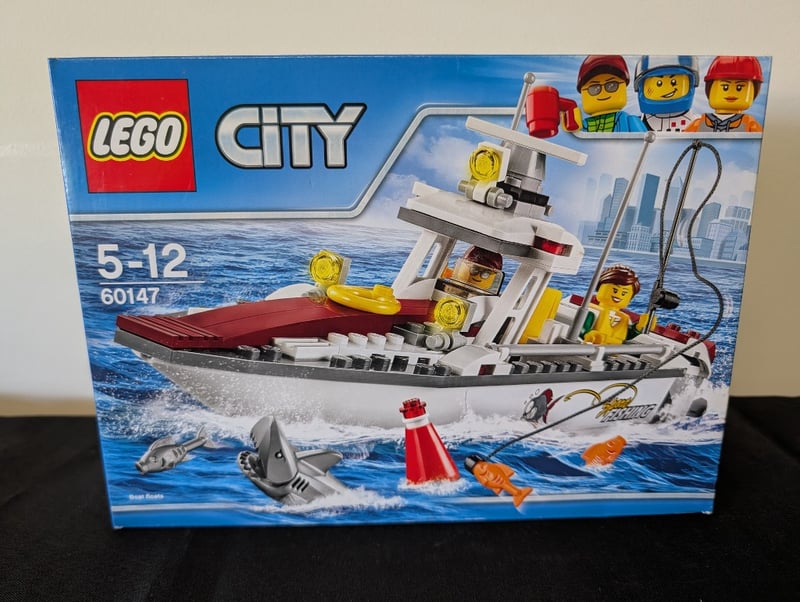 LEGO CITY FISHING BOAT SET 60147 - COMPLETE WITH ORIGINAL PACKAGING Item Size: Height: 30cm, Width: 30cm, Depth: 30cm, Weight: 2Kg Lego City Fishing Boat Set 60147 (5-12 Age Range) Featuring A Detailed Motorised Fishing Vessel With Working Features, Rescue Boat With Yellow Lifebuoy, Dock Platform Accessories, Four Minifigures Including Captain And Crew, Shark And Fish Elements, Navigation Buoy, And Comprehensive Instruction Manual. Set Includes Authentic Maritime Details And Interactive Play Components. Condition: Good - Refer To Images 655508+133