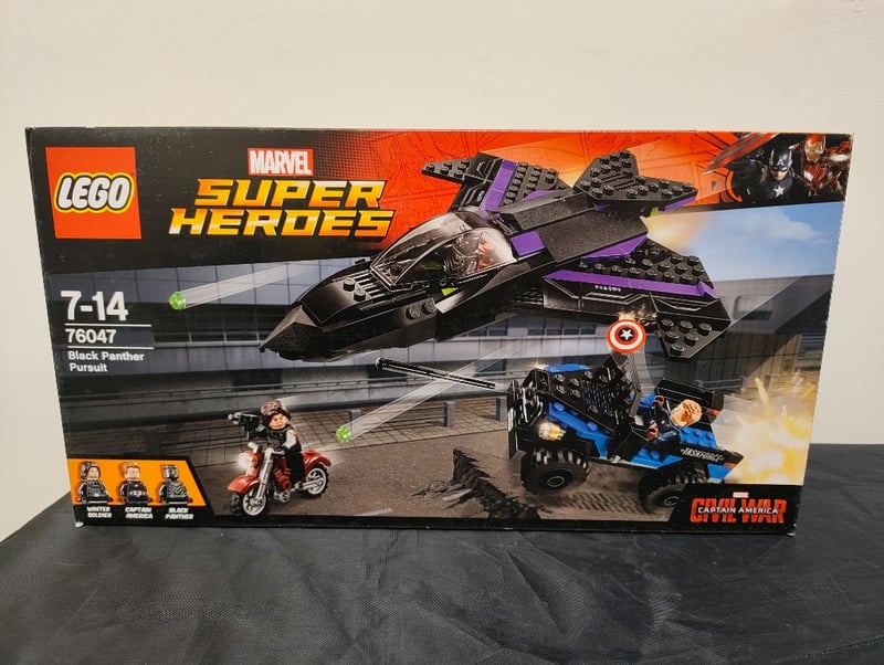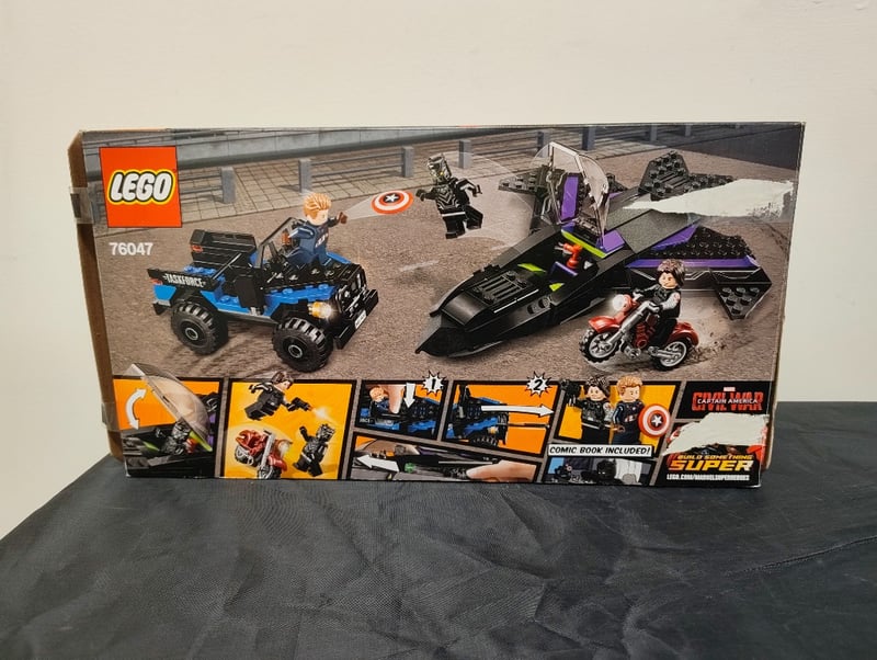 LEGO MARVEL SUPER HEROES BLACK PANTHER PURSUIT SET 76047 Item Size: Height: 15cm, Width: 40cm, Depth: 10cm, Weight: 5Kg Lego Marvel Super Heroes Set 76047 Featuring The Black Panther Pursuit Theme From Captain Condition: Good - Refer To Images 655508+153