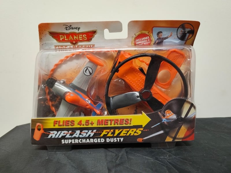 DISNEY PLANES FIRE & RESCUE RIP & FLY SUPERCHARGED DUSTY REMOTE CONTROL AIRCRAFT Item Size: Height: 15cm, Width: 28cm, Depth: 12cm, Weight: 2Kg Disney Planes Fire & Rescue "Rip & Fly" Supercharged Dusty Remote Control Aircraft Toy. Orange And Black Motorized Plane With Detachable Propeller, Included Hand-Held Transmitter Controller, And Black Antenna. Features "Flies 4.5+ Metres" Capability. Original Packaging Includes Character Merchandise Window Display Card With Instruction Booklet. Mattel Product Manufactured Circa Mid-2010S. Condition: Good - Refer To Images 655508+154