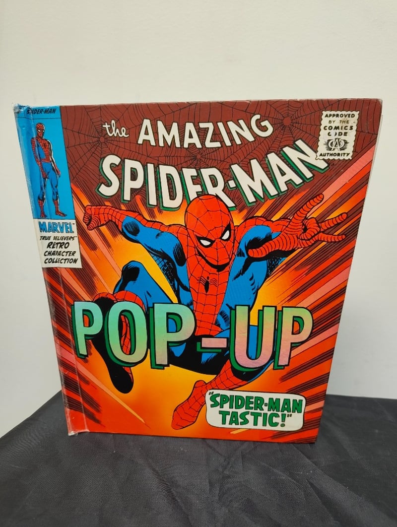 THE AMAZING SPIDER-MAN POP-UP BOOK - MARVEL RETRO CHARACTER COLLECTION Item Size: Height: 27cm, Width: 21cm, Depth: 5cm, Weight: 3Kg Vintage Marvel Pop-Up Book Featuring The Amazing Spider-Man From The True Believers Retro Character Collection. Three-Dimensional Interactive Pop-Up Illustrations Showcase Classic Spider-Man Artwork In Vibrant Red, Blue, And Orange Tones. Includes Original Retail Packaging With Printed Warning Labels And Barcode. Part Of Marvel'S Nostalgic Retro Character Series Celebrating Iconic Superhero Design. Condition: Good - Refer To Images 655508+163