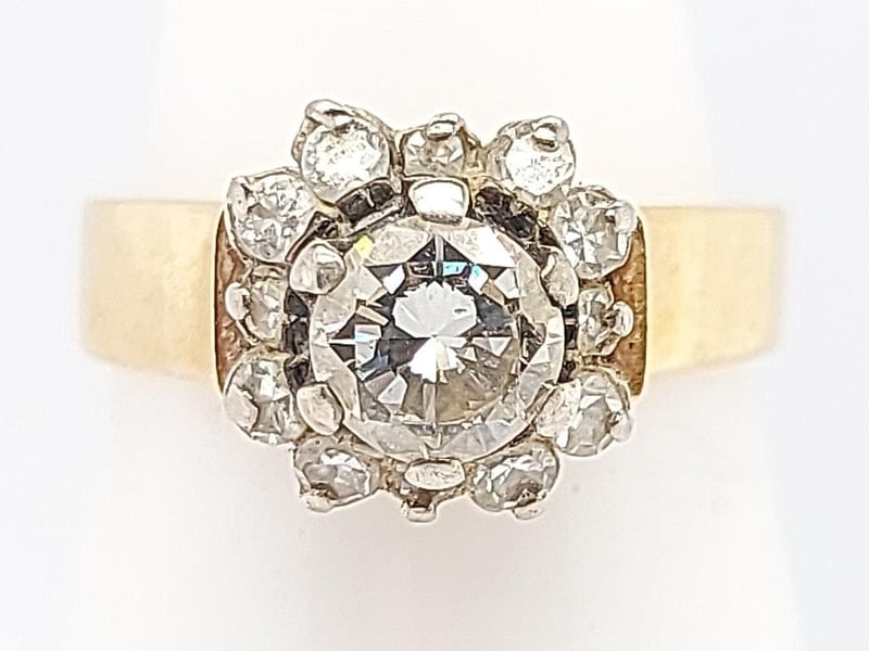 18CT GOLD WOMENS DIAMOND RING 13 Stones Round Brilliant Cut Total Item Weight: 4.76g Length: 2.50cm Dimensions: Height: 9.10mm, Width: 18.20mm, Depth: 26.60mm Markings: 18Ct Condition: Fair - Refer To Images TOORMINA 548663+23