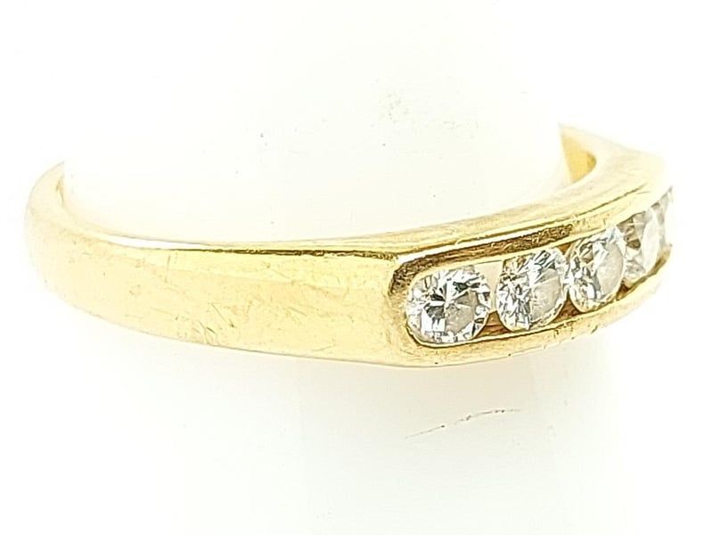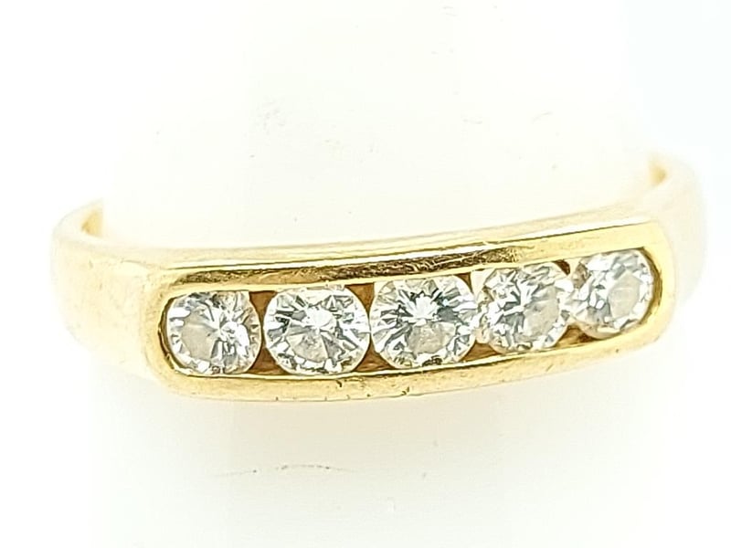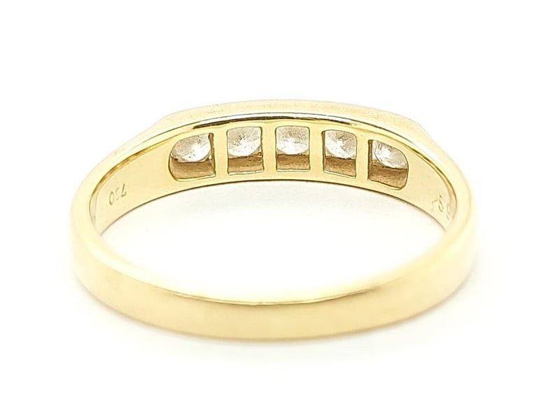 18K GOLD SAPPHIRE RING 5 Stones Round Brilliant Cut Total Item Weight: 4.40g Length: 2.20cm Dimensions: Height: 4.40mm, Width: 21.30mm, Depth: 22.90mm Markings: 750, 5918 Condition: Fair - Refer To Images TOORMINA 548663+26