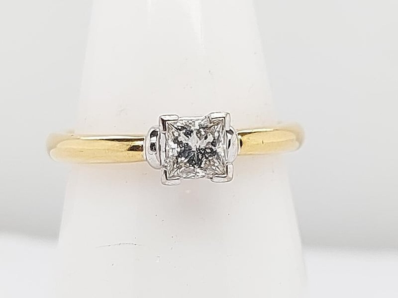 18CT GOLD PRINCESS CUT DIAMOND SOLITARE ENGAGEMENT RING,DiamondTotal Item Weight: 4.40gLength: 2.30cmDimensions: Height: 24.00mm, Width: 22.50mm, Depth: 5.00mmMarkings: 750 MmCondition: Good - Refer To ImagesTOORMINA548663+2