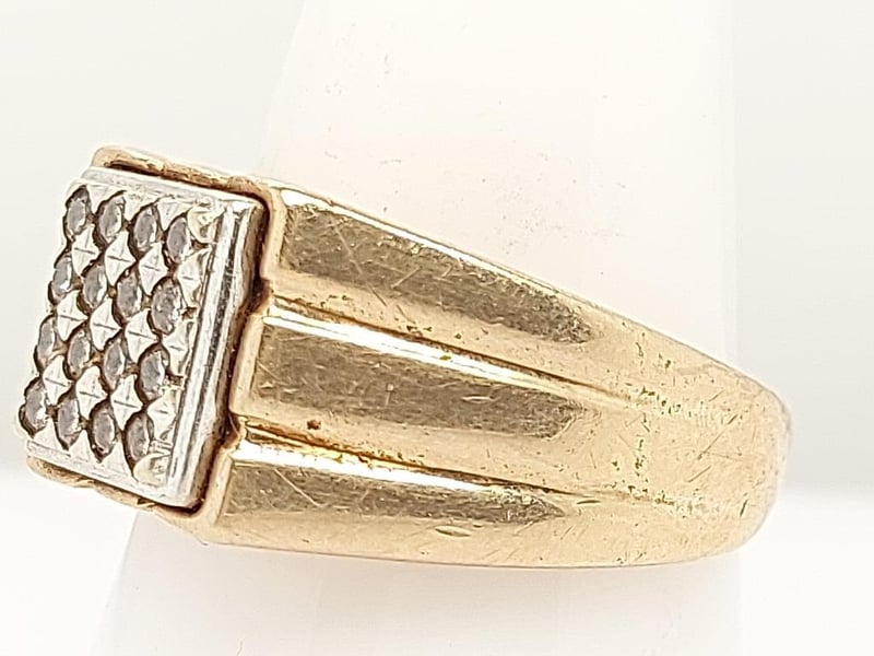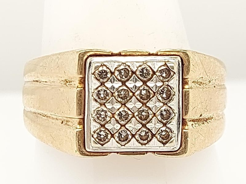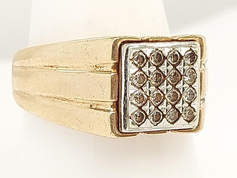 9K GOLD MENS DIAMOND RING Round Brilliant Cut Total Item Weight: 8.20g Length: 2.50cm Dimensions: Height: 11.30mm, Width: 24.00mm, Depth: 26.40mm Markings: 375, Bw Condition: Good - Refer To Images TOORMINA 548663+20