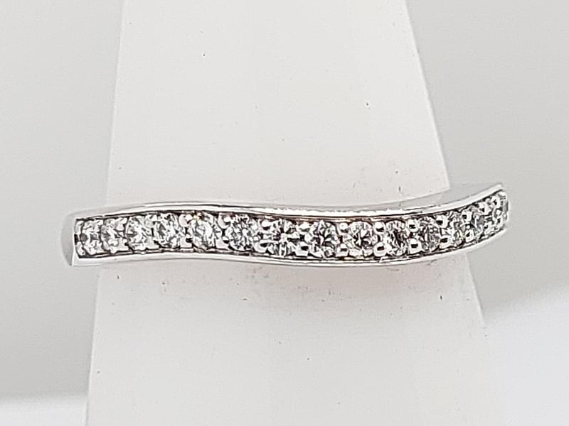 28CT WHITE GOLD DIAMOND BAND RING 19 Diamonds Round Brilliant Cut Total Item Weight: 3.70g Length: 2.00cm Dimensions: Height: 2.70mm, Width: 20.50mm, Depth: 20.30mm Markings: 750 Condition: Good - Refer To Images TOORMINA 548663+10