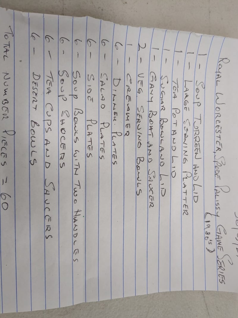 ROYAL WORCESTER PALISSY GAME SERIES DINNER SERVICE