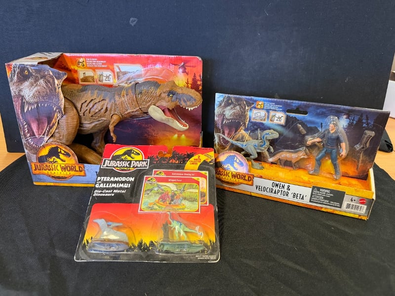 ASSORTED ACTION FIGURINES 1X T-Rex 1X Pteranodon 1X Gallimimus 1X Owen & Velociraptor "Beta" Condition: Fair - Refer To Images SR 233637+4