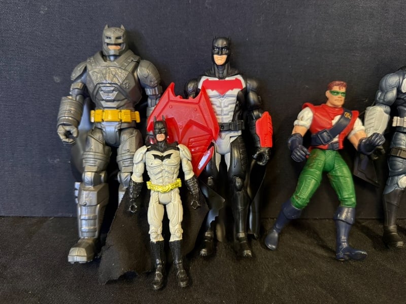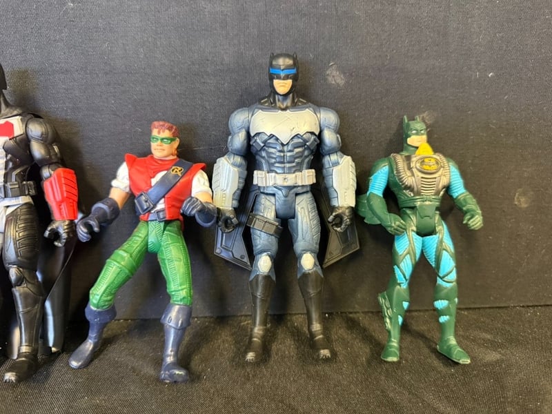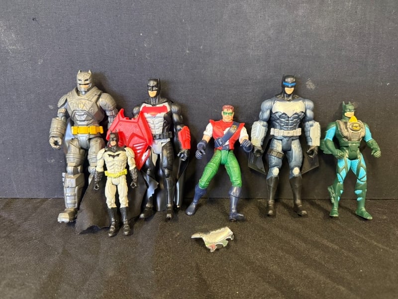 ASSORTED ACTION FIGURINES Item Size: Height: 25cm, Width: 20cm, Depth: 15cm, Weight: 1Kg 5X Assorted Batman'S 1X Robbin Condition: Good - Refer To Images SR 233637+14
