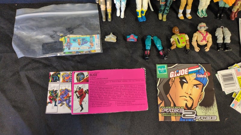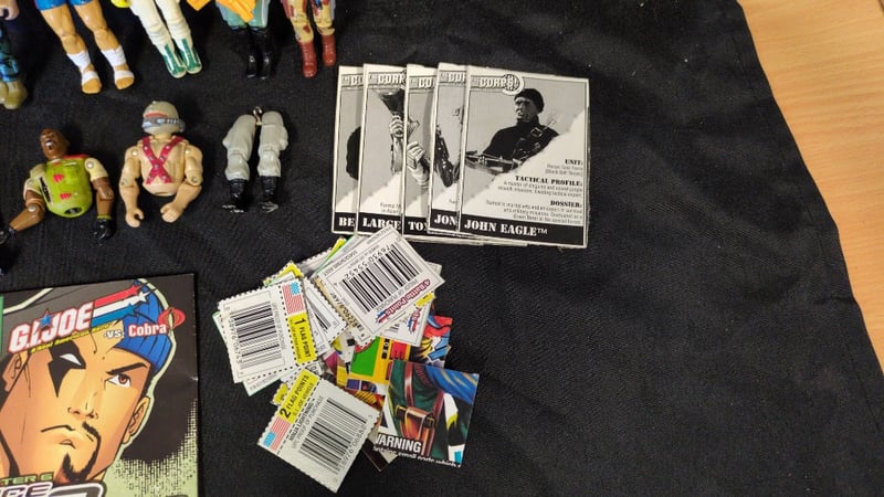 ASSORTED G.I. JOE ITEMS INCLUDING FIGURINES AND CARDS Item Size: Height: 25cm, Width: 20cm, Depth: 15cm, Weight: 1Kg Condition: Good - Refer To Images SR 233637+28