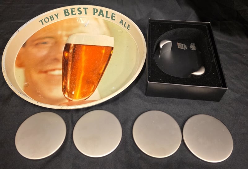 Includes Toby Best Pale Ale Charrington Serving Platter, Network Access Four Metal Coasters Set
