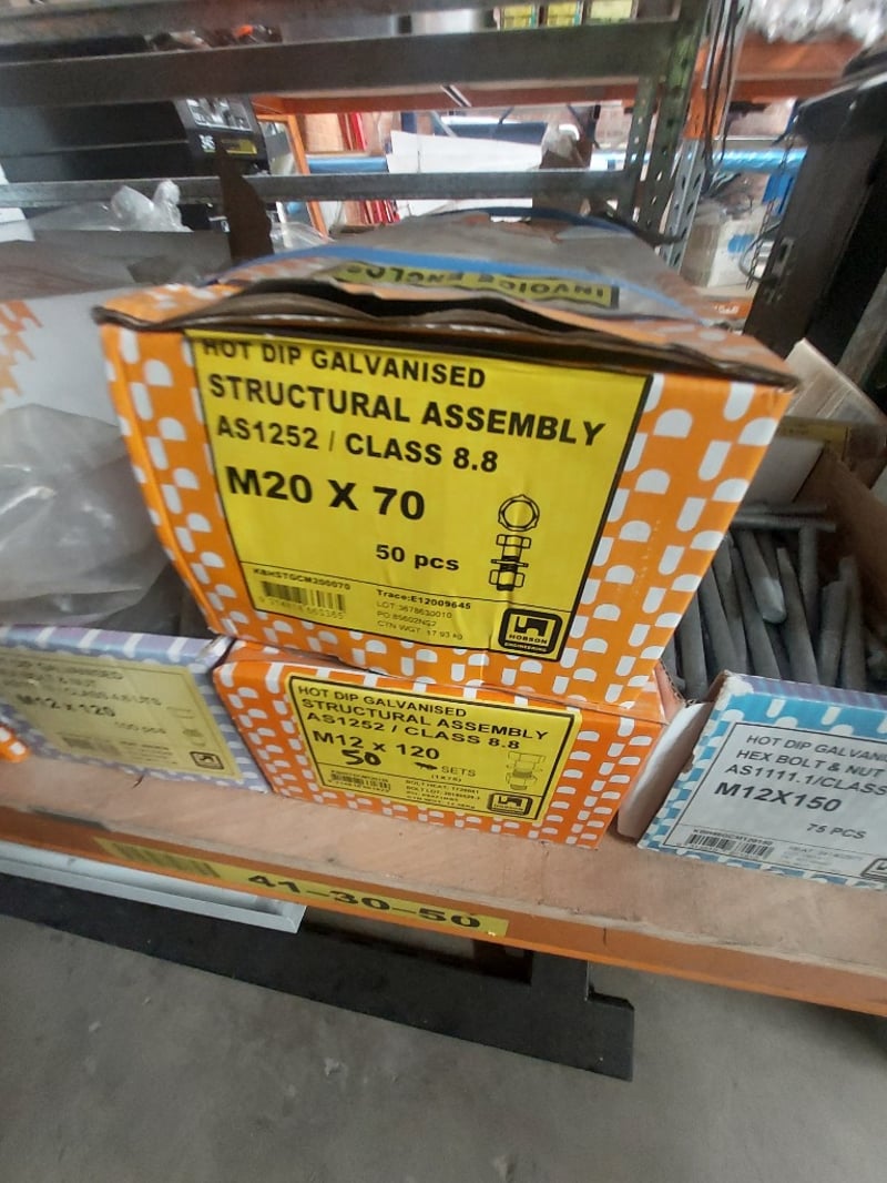 Comprehensive lot of galvanised structural fasteners,assemblies and more .... Sold as Lot