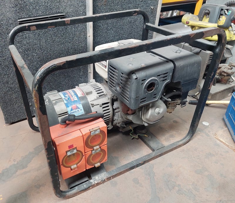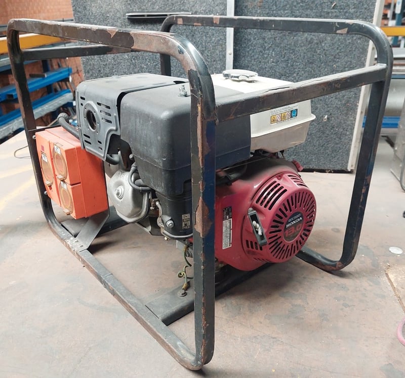 Petrol-powered generator featuring a Honda GX390 13 horsepower engine. Note: item is untested, signs of wear.
