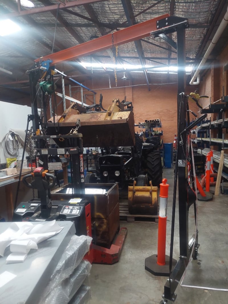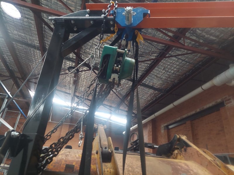 Comprehensive chain rigging systems with multiple attachment points. Equipment suitable for heavy material movement, manufacturing operations, or demolition work,on mobile castors. Note: Untested, signs of wear, requires dismantling, all other items shown in picture not for bidding