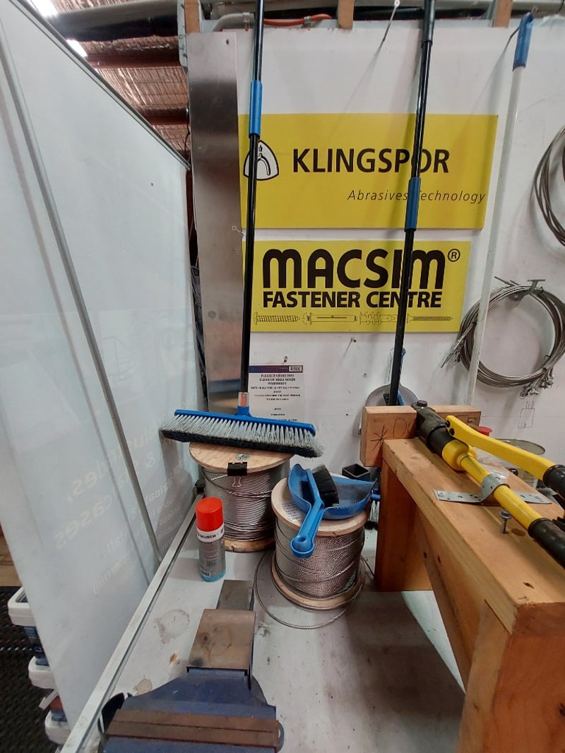 Comprehensive soldering and fastening workshop display from MACSIM Fastener Centre featuring Klingspor and more .... Sold as Lot Note: untested, signs of wear