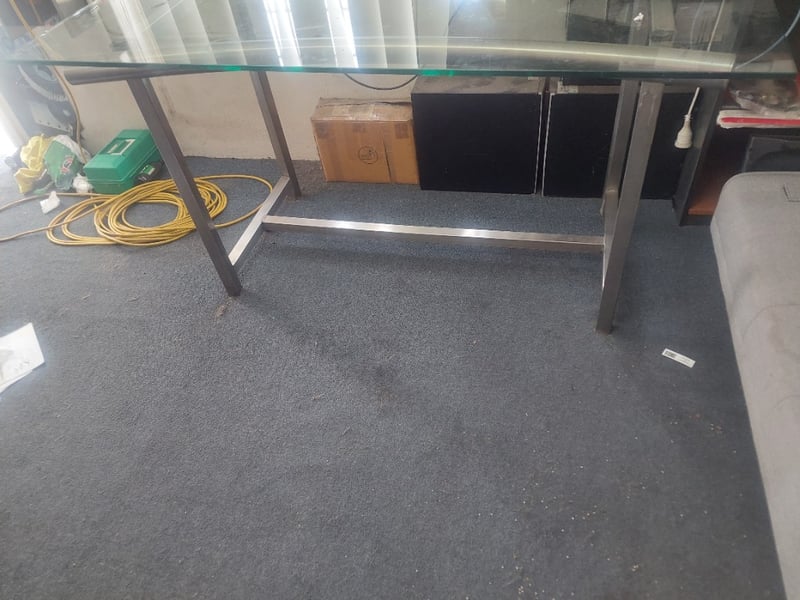 Home Furniture lot, includes glass dining table, Steel frame, 3 seater lounge, upholstered.Sold as lot