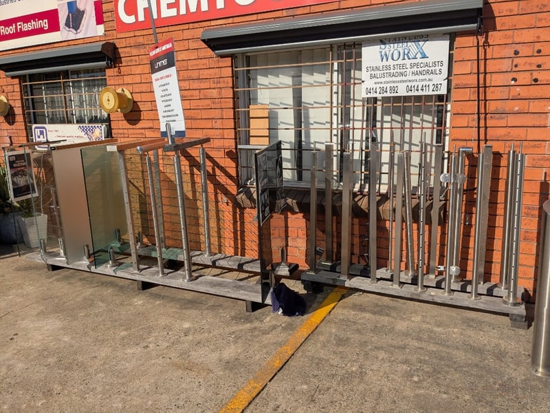 Professional-grade stainless steel balustrade and railing system comprising multiple components. Sold.as lot