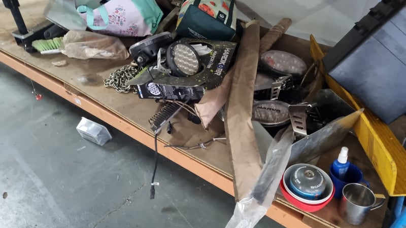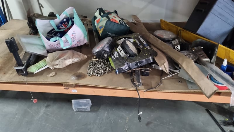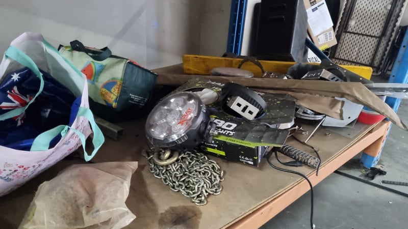 Assorted Contents of Lower Shelf, Lot includes Spot lights, Jack Off Leg, Chain and MoreSold asLocation: South Lismore, NSW Inspection: Wednesday 22nd of April, 9am to 3pm Collections: STRICTLY Tuesday the 28th April to Friday 1st May