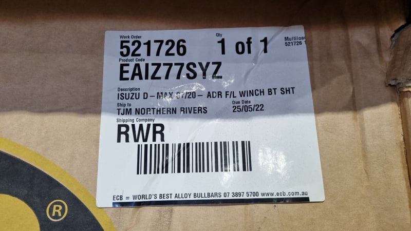East Coast Bull Bar, Alloy, Suits Isuzu DMax 07/20, Part Number EAIZ77SYZLocation: South Lismore, NSW Inspection: Wednesday 22nd of April, 9am to 3pm Collections: STRICTLY Tuesday the 28th April to Friday 1st May