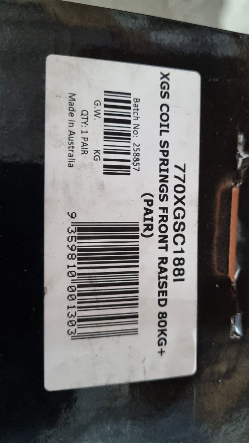 TJM XGS Coil Springs Front Raised 80kg, Part Number 770XGSC188I