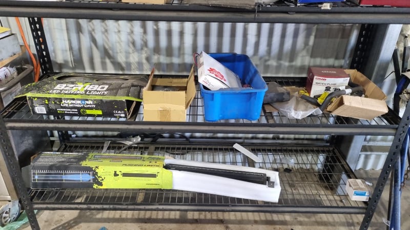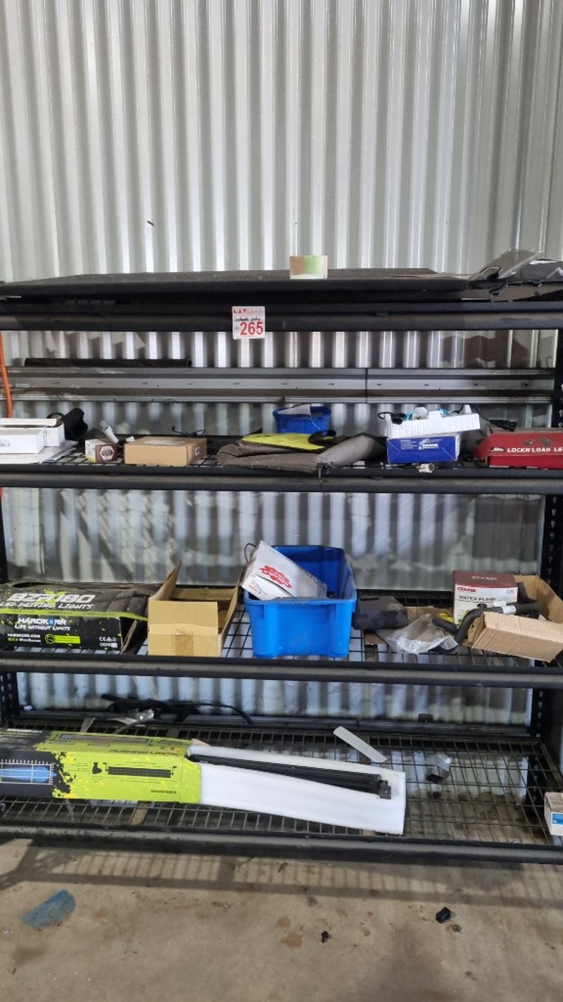 Assorted Contents On Shelves. Includes, Light Bar, Driving Lights , Led replacement Globes and more