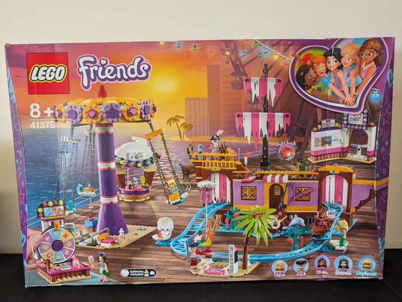 LEGO FRIENDS AMUSEMENT PARK SET 41375 - COMPLETE BOXED SETItem Size: Height: 60cm, Width: 35cm, Depth: 35cm, Weight: 4KgLego Friends Amusement Park Playset 41375 Featuring A Colorful Beachside Carnival Theme With Ferris Wheel, Carousel, Food Stalls, Arcade Games, And Water Slide Attractions. Includes Five Minifigure Characters (Chloe, Zoe, Mia, Olivia, And Stephanie) With Themed Accessories. Set Comprises Approximately 1,200+ Pieces With Vibrant Purple, Pink, Yellow And Turquoise Colourways. Box Displays Comprehensive Product Photography And Component Listings On Front And Reverse.Condition: Good - Refer To Images584531+6