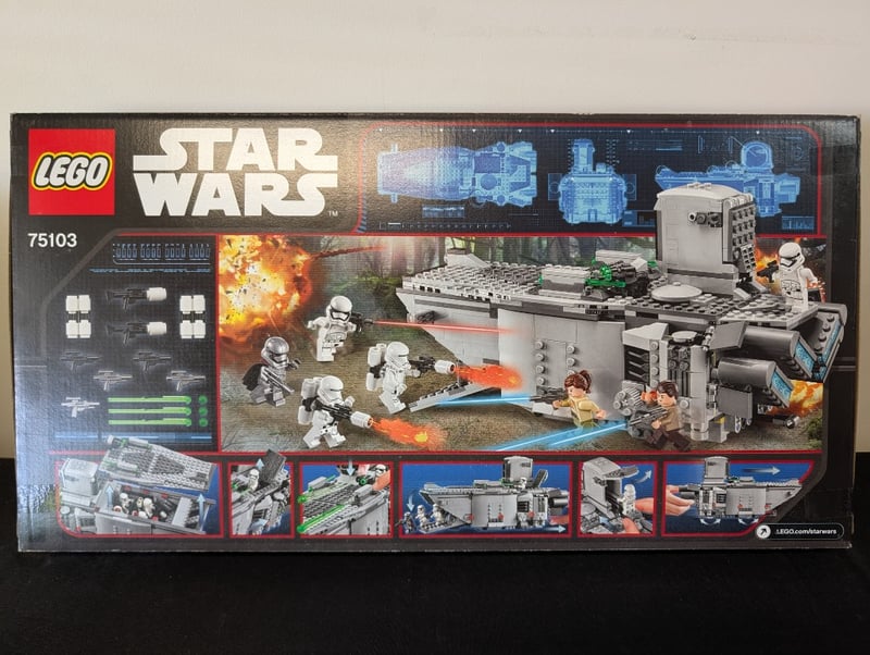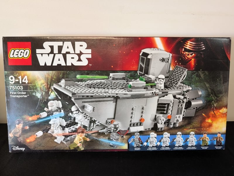 LEGO STAR WARS 75103 FIRST ORDER TRANSPORTER SETItem Size: Height: 35cm, Width: 35cm, Depth: 35cm, Weight: 3KgLego Star Wars Set 75103 "First Order Transporter" Featuring A Detailed White And Grey Starship With Opening Cockpit, Cargo Bay, And Weapons Systems.Condition: Good - Refer To Images584531+14