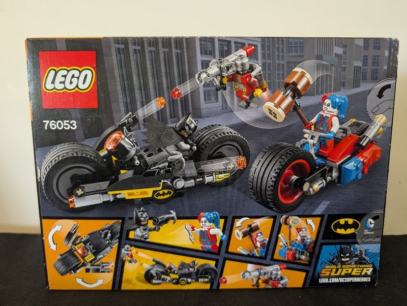 LEGO DC COMICS SUPER HEROES BATMAN GOTHAM CITY CYCLE CHASE SET 76053Item Size: Height: 35cm, Width: 35cm, Depth: 35cm, Weight: 2KgLego Set 76053 Featuring Batman Gotham City Cycle Chase From The Dc Comics Super Heroes Line. Set Includes Two Motorized Vehicles—Batman'S Sleek Black Cycle With Yellow Accents And Harley Quinn'S Red MotorcycleCondition: Good - Refer To Images584531+20