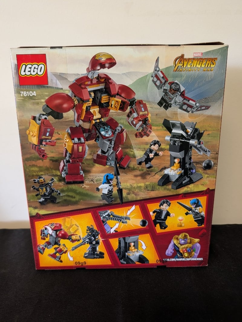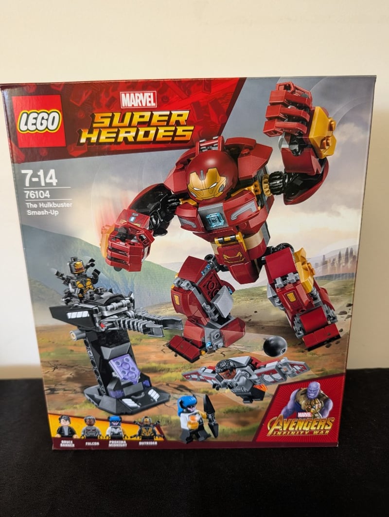 LEGO MARVEL SUPER HEROES THE HULKBUSTER SMASH-UP SET 76104Item Size: Height: 35cm, Width: 35cm, Depth: 35cm, Weight: 2KgLego Marvel Super Heroes Set 76104 Featuring The Hulkbuster Smash-Up With Large Red And Gold Armoured Mech Figure, Multiple Minifigures Including War Machine, Falcon, Proxima Midnight And Outrider, Weapon Accessories, And Black Destructible Platform. From Avengers Infinity War Collection. Age 7-14 Years.Condition: Good - Refer To Images584531+24