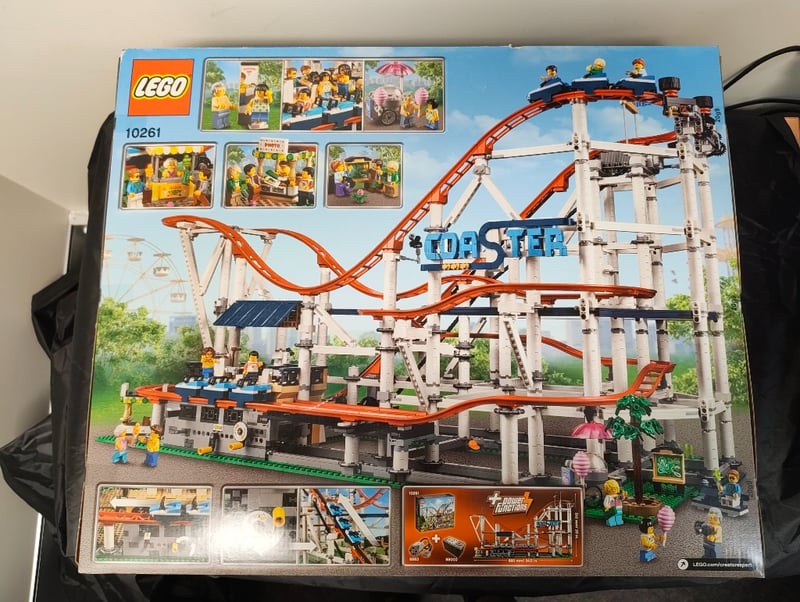 Lego Creator Expert Roller Coaster Set #10261 Featuring 4124 Pieces With Motorized Orange Track System, Detailed Amusement Park Theming, Multiple Minifigures, And Functional Roller Coaster Mechanics. Includes Themed Structures With Carnival Game Booth, Ticket Stand, And Operator Station. Buildable In Multiple Configurations With Advanced Construction Techniques Suitable For Experienced Builders Aged 16+.