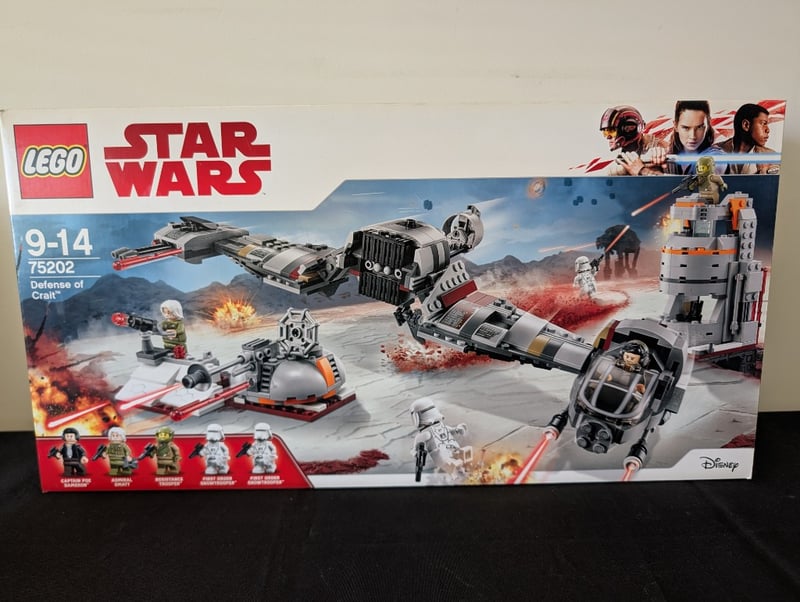 LEGO STAR WARS 75202 DEFENSE OF CRAIT BUILDING SETItem Size: Height: 38cm, Width: 55cm, Depth: 28cm, Weight: 3KgComplete Lego Star Wars Set 75202 Featuring The Defense Of Crait Scene With Multiple Buildable Vehicles Including A First Order Transport And Resistance Speeder, Tower Structure With Firing Mechanisms, And Five MinifiguresCondition: Good - Refer To Images584531+10